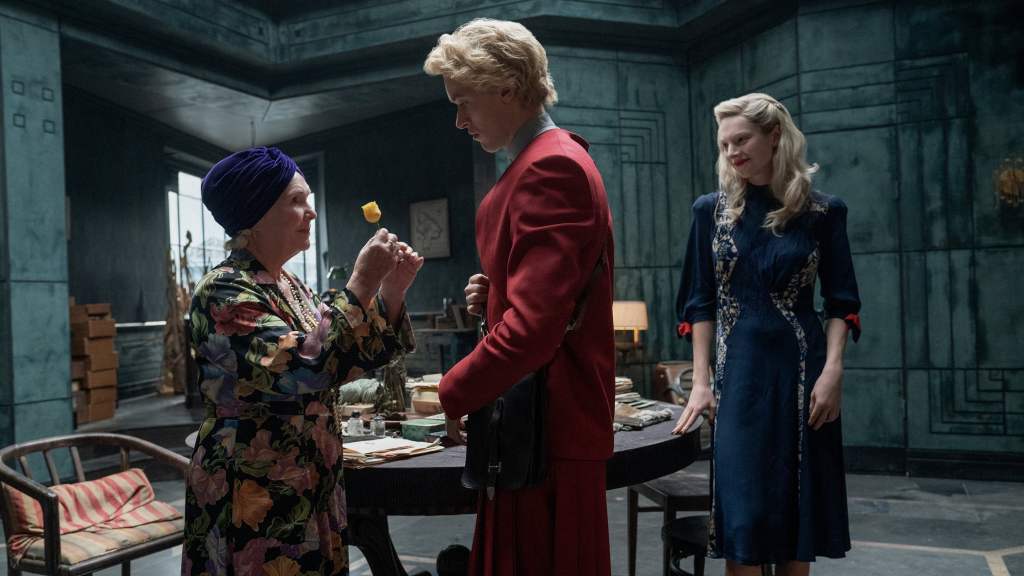 Davis’ character is quite a treat here, not only is her performance on par with the grandiose flair of the Capitol people we’ve met in the other movies, but there’s a hint of evil madness to it that’s just right. Her character’s bright red gloves make her hands look constantly drenched in blood, while the red from the top down of her white dress makes it look like blood has rained down on her. Schafer has a small but quite significant role that might only register to book readers or avid fans of the Hunger Games movies.